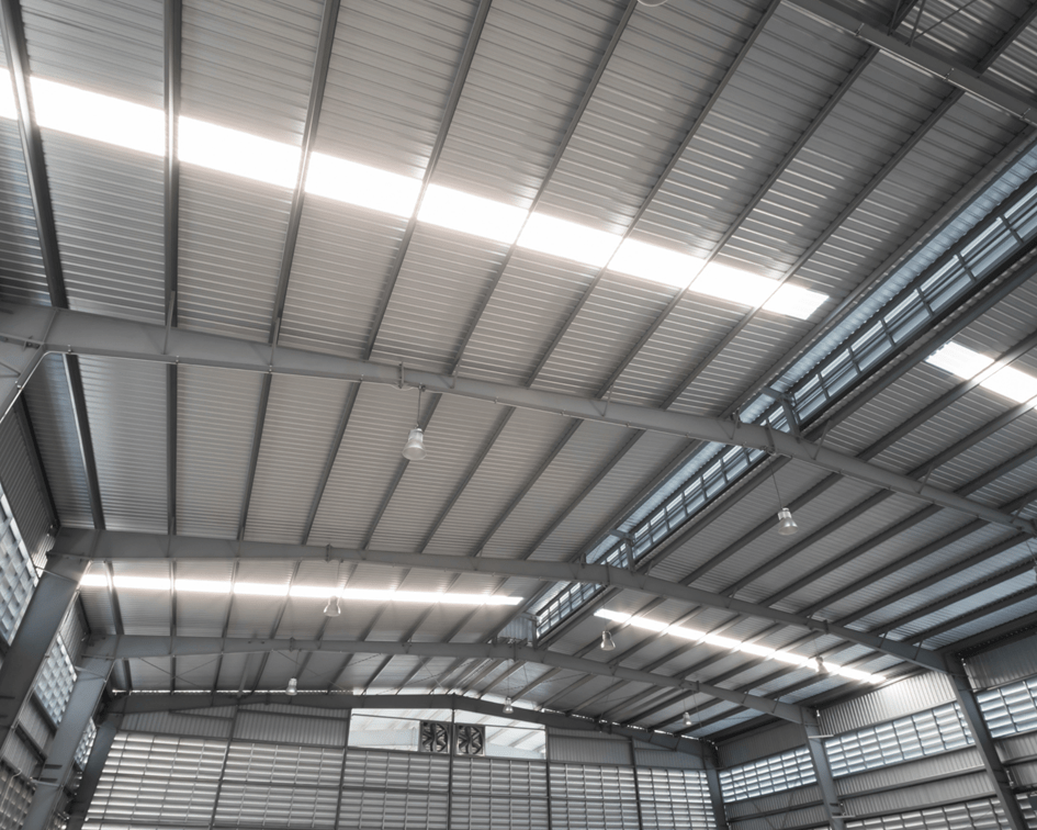 2. Gudang dan Pabrik Cocok untuk bangunan industri yang membutuhkan atap tahan lama dan minim perawatan.